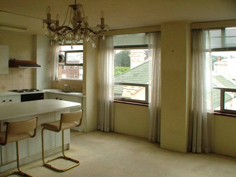 Very sunny, airy & spacious 1 bedroom strata unit on the 5th floor with Harbour, Rushcutters Bay & Park views. Spacious L shaped lounge room with built in, dining area, modern open plan kitchen with breakfast bar, good sized bedroom with large built in robe, tiled bathroom with internal laundry. Lovely north/east aspect. Sunny all day. Security building with lift. Needs TLC. Close trains, shops, the Harbour parks & the city.