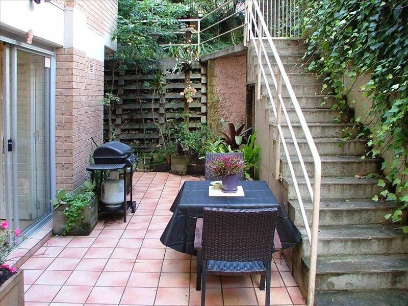 Rare and spacious elevated ground floor 1 bedroom strata unit with a massive entertainers terrace which can be accessed either by a separate private street entrance through a lush private garden or though the property. Features spacious living room with built in book shelves and opens through large sliding glass doors to a private tiled terrace with BBQ area enshrouded by greenery. Open plan full kitchen with leafy outlook, large bedroom with built in robe which opens through glass doors to an undercover tiled terrace surrounded by trees & shrubs. Tiled bathroom with bath and internal laundry. Excess amounts of storage is provided by 3 storage enclaves. The unit comes complete with large sandstone planter pots, high ceilings, floating timber floors, full security and plantation shutters on all window and doors. Security building with lift, close to trains, local shops. Parks and the harbour foreshore. Pet friendly building, excellent investment or first home for a pet lover or young family.