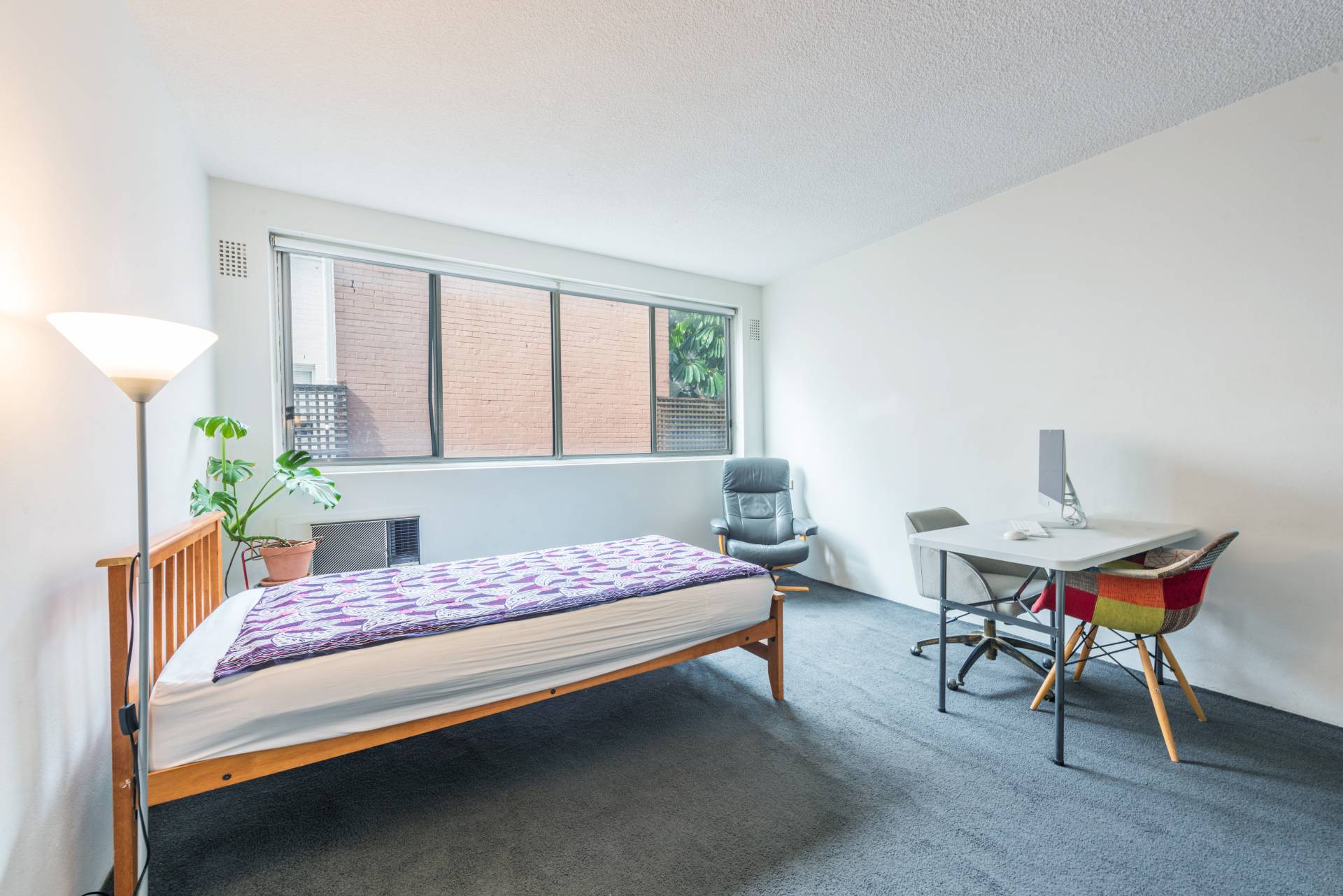 Bright, airy and north-facing, this unit has wide half-wall windows, tidy, functional kitchenette, over-bath shower, linen press, storage and built-in robe/s.