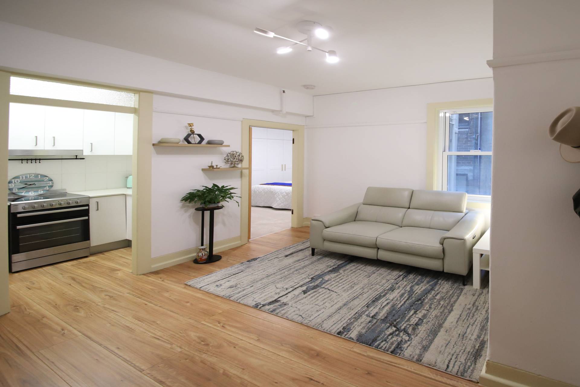 The apartment features a spacious living area, separate modern and functional stone top gas kitchen with copious storage and fridge, King-sized bedroom with oversized built-in robe and study area and modern tiled bathroom with bath. Lovely floating timber floors, trendy down lights and high ceilings throughout. Peaceful and quiet at the rear of the building. Security building with level access and lift.