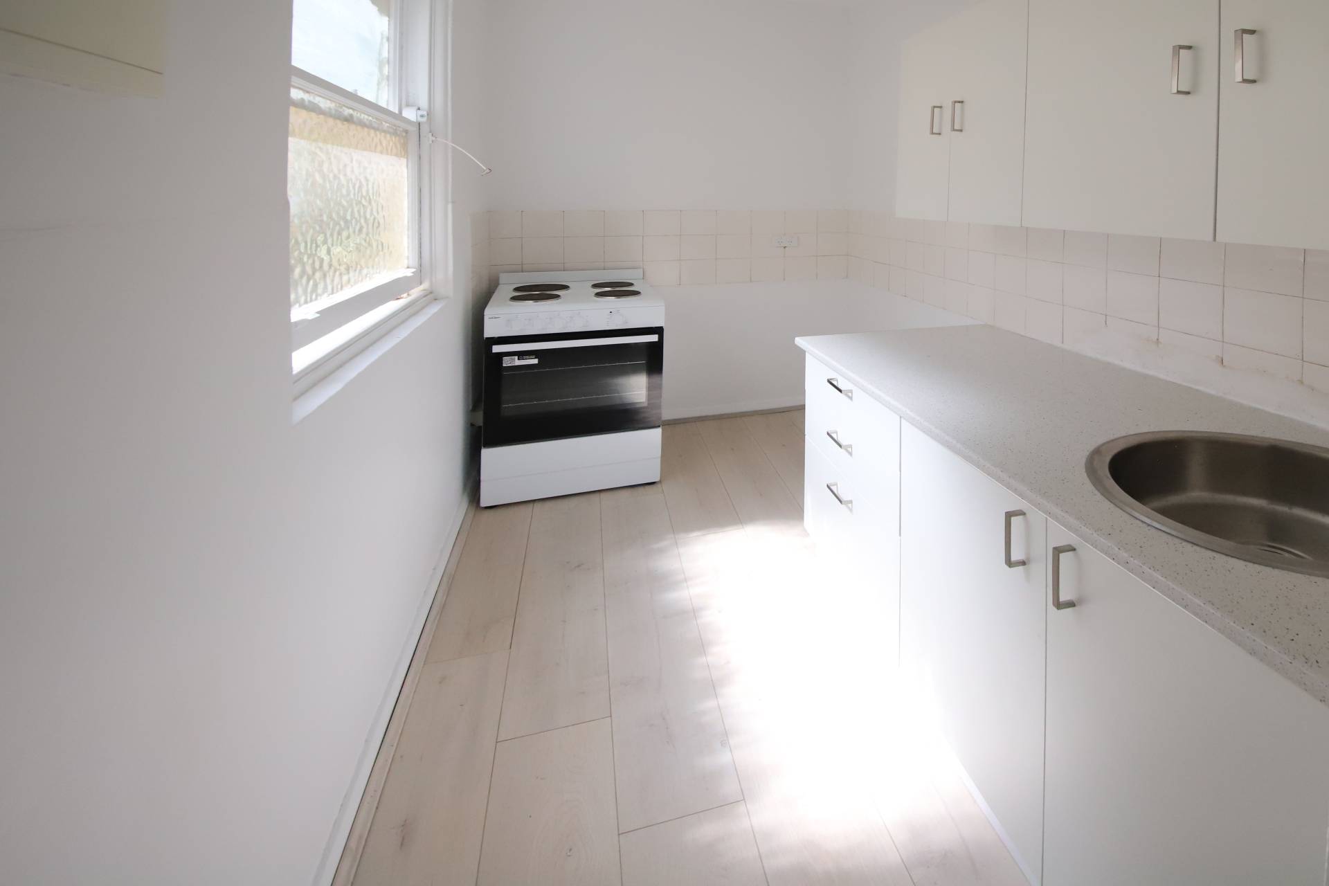 Enjoy a generous living area with expansive valley views and abundant natural light, a large sun-drenched bedroom, a functional galley-style kitchen, and a tiled bathroom complete with a full bathtub and internal laundry facilities. The apartment also features floating timber floors, fresh paint throughout, and ceiling fans in both the bedroom and living area.