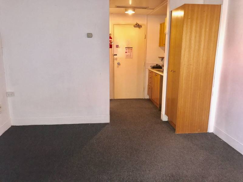 Bright and airy studio apartment in security building. Functional kitchen, separate bathroom and laundry facilities on site. Pool. Close to shops, transport at the door, close to the city.