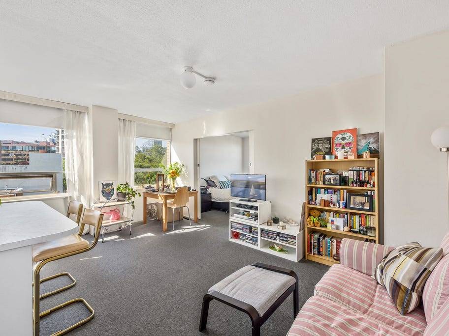 Located on the 5th floor of a well maintained & updated building, this spacious & sun-drenched 1 bedroom strata apartment has a perfect northern aspect & views over the Harbour, Rushcutters Bay Marina & park. It features a good sized living area with wall to wall windows, open plan functional stainless steel kitchen with breakfast bar, good sized sun-filled bedroom with large windows, built in robe & views over the CYC & Bay. Out-dated but still functional tiled bathroom. Security building with updated foyer, new lift & located in a pleasant garden surrounding. Short stroll to trains, shops, cafes, parks & the harbour. Perfect opportunity to add some finishing touches & capitalise.